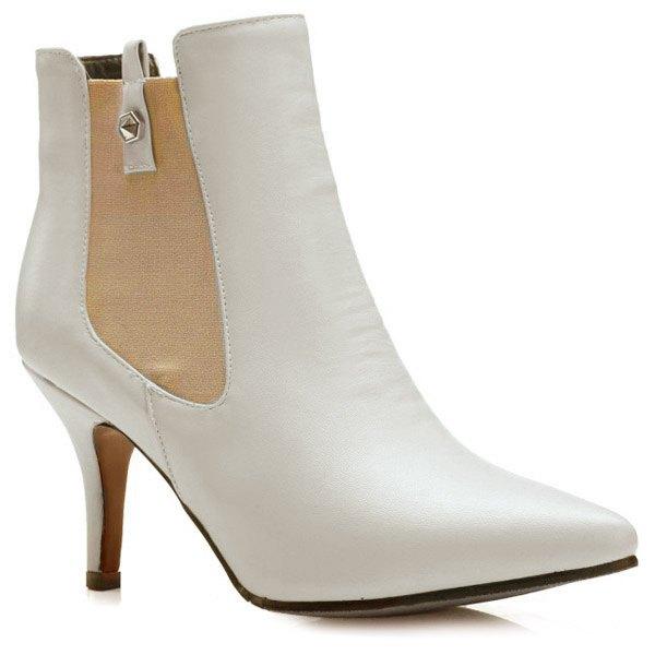 Pointed Toe PU Leather Ankle Boots – Off-white