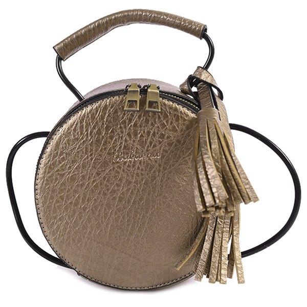 Textured PU Leather Tassel Canteen Bag – Bronze-colored
