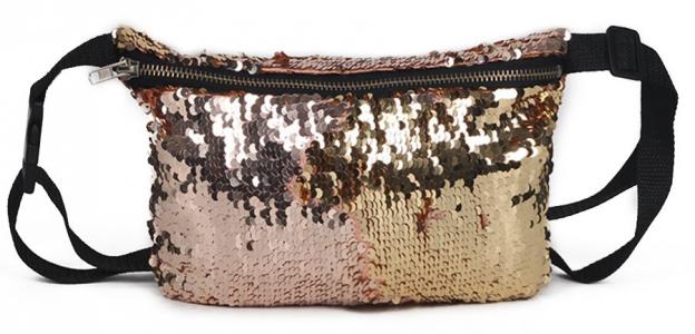 Color Block Zipper Sequins Fanny Pack – Champagne Gold