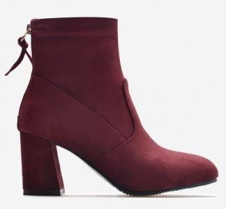 High Heel Pointed Toe Ankle Boots – Wine Red