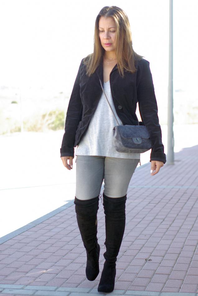 Pantalón+botas xxl Sí, este es el más clásico, popular o cómodo. He escogido la gamas de los grises y negros, típicos colores para esta época pero una combinación con la que que siempre se acierta.