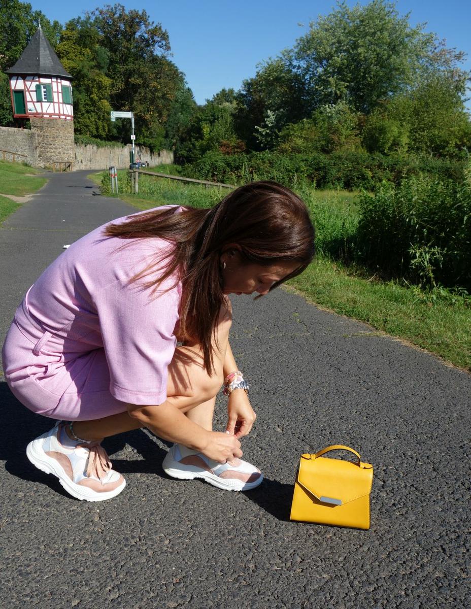 En esta ocasión, tomé unos zapatos más lady y un clutch para darle ese aire más elegante y quitar un poco la dureza de la prenda. los colores también en contraste con el rosa pero a la vez ideales para ese momento algo elegante.