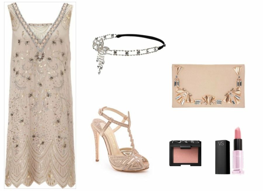 Si preferimos apostar por un look romántico, nada mejor que decantarse por el color nude. En este caso, hemos escogido un estilismo de aire años 20, tan de moda esta temporada gracias a la película El Gran Gatsby. Los mejores complementos serán aquellos que sigan este estilo, mediante unos zapatos de aire vintage y un tocado de pedrería.Agradecimientos: Polyvore