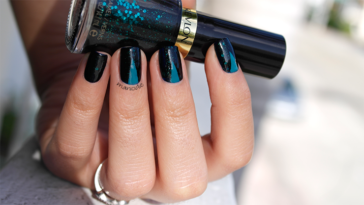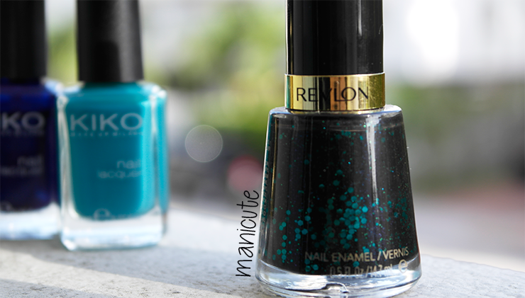 La manicura no me gusta demasiado. Pensaba que, una vez en las uñas, el esmalte jelly de REVLON iba a verse espectacular. Creía que la purpurina iba a ser la máxima protagonista y que ayudaría a resaltar los triángulos turquesa (son prácticamente el mismo color).