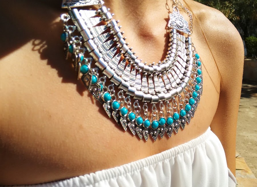 Chic@s qué tal lleváis la semana?? Ya va oliendo a finde! Y hoy os traigo un look acompañado de un complemento muy especial, un collar de inspiración tribal en tonos azul y plata antigua. Es muy vistoso y no pesa absolutamente nada! Me encanta como decora el look.