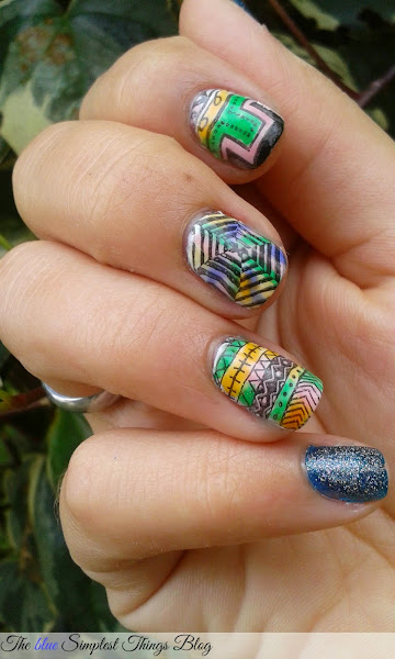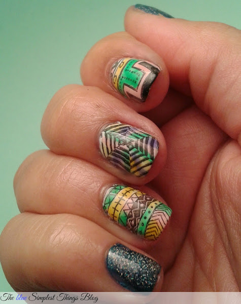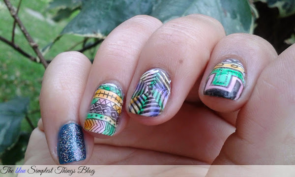 En las demás use las tintas después de estampar, también aplicándolas con pincel de nail art.