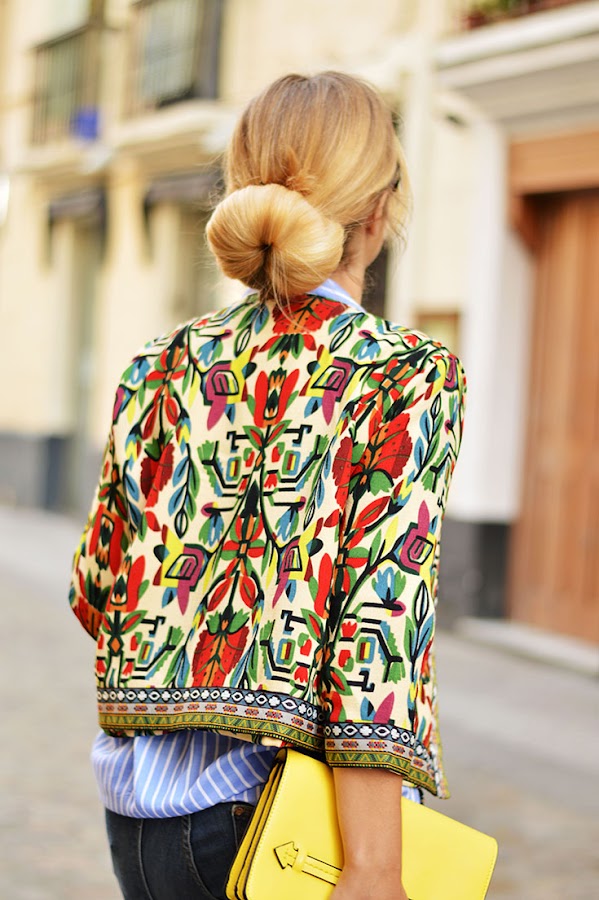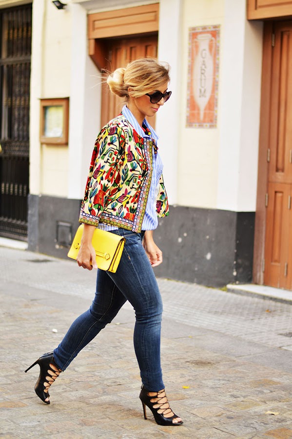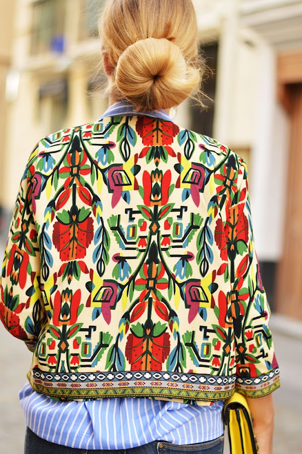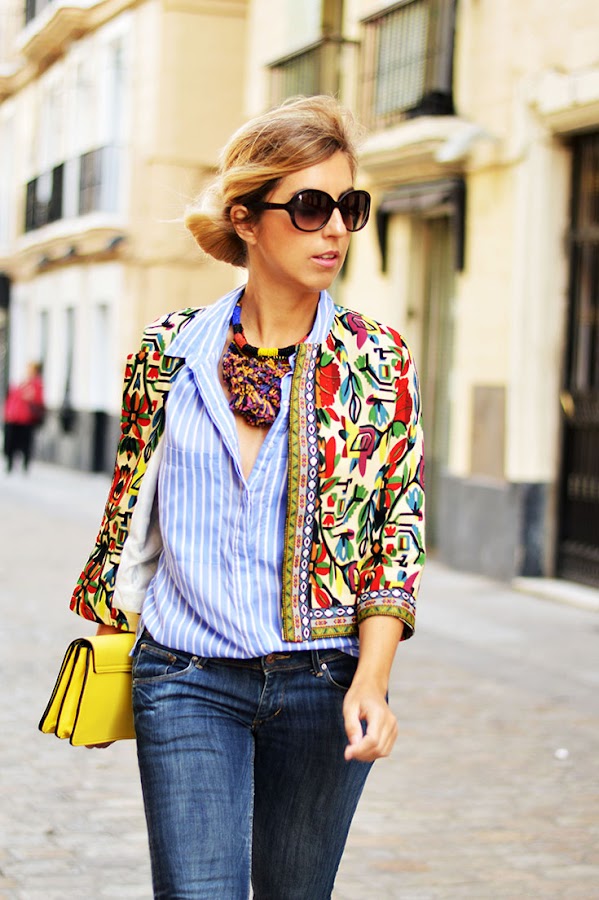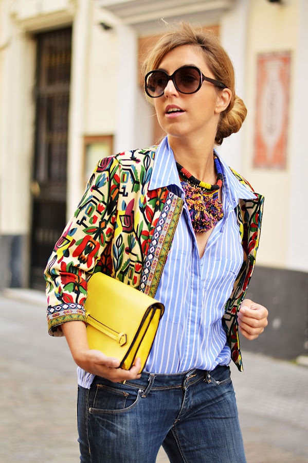 Tribal jacket: Shein / Shirt: Sfera / Bag, necklace & heels: Zara