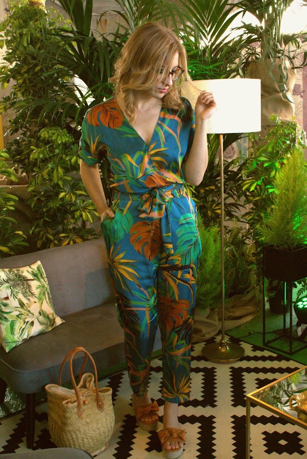 El estampado tropical es uno de mis preferidos cuando se trata de crear un outfit que simbolice vacaciones y buen tiempo. Y eso es lo que me apetecía, tenía claro que aunque el sol no quería dejarse ver, iba a llevar algo alegre y colorido. Cuando vi este precioso mono de estampado tropical de Zara, no lo dudé un instante y me lo llevé. Para darle un toque más informal y veraniego, escogí unas sandalias de yute que compré en una tienda local y mi preciosa cesta en la que llevar todo lo necesario para disfrutar de una fantástica escapada con amigas a la vecina isla de Tenerife.