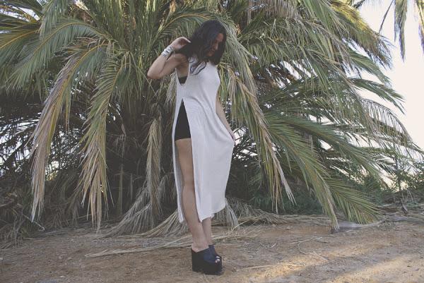 Elegimos un entorno muy tropical para mostrar este look con estas maravillosas y altísimas sandalias
