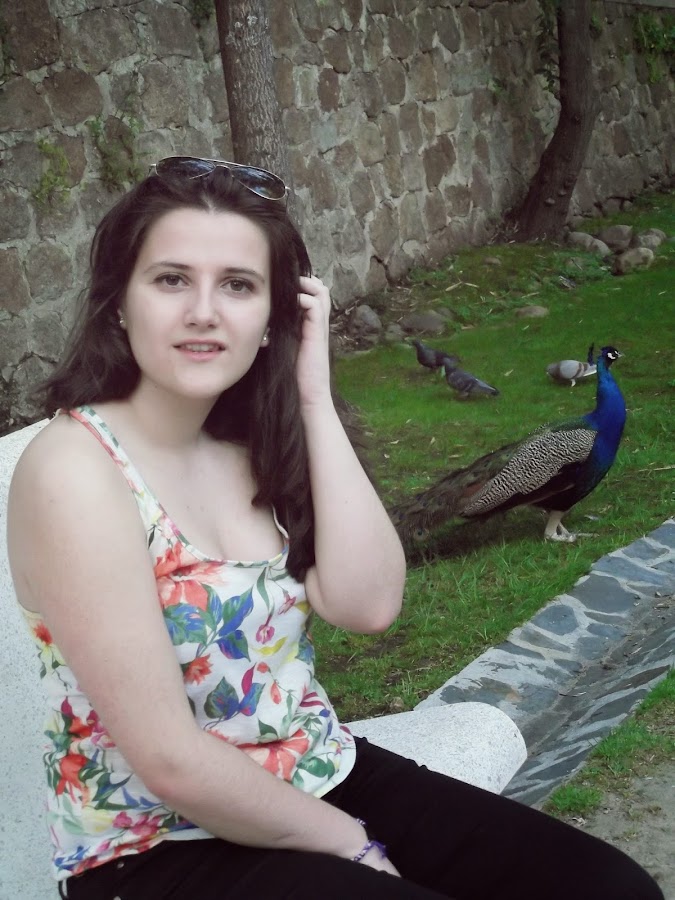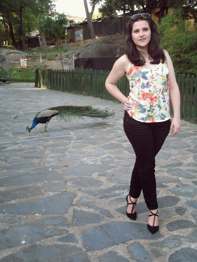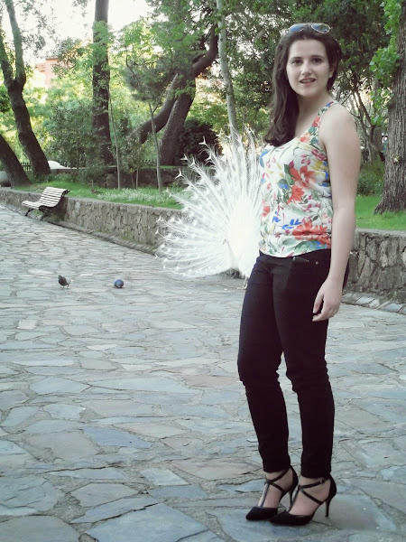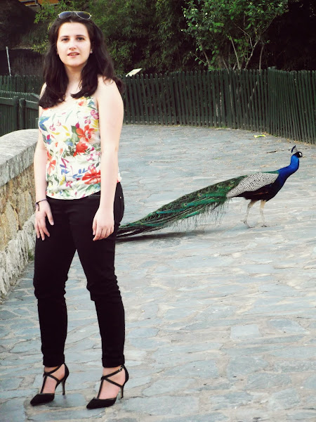 Como acompañante estos pequeños, los pavos reales, me parecen tan elegantes con sus largas colas de colores y con su dulces pasos.