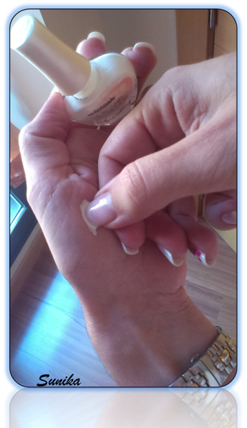 En primer lugar como en toda manicura se da una capa de base para proteger la uña. Después con vuestro esmalte blanco de manicura francesa os pintáis una linea en la parte interior gordita de vuestra mano.