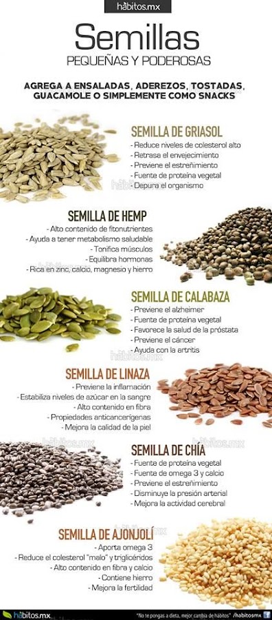 3. Semillas, que además de ser buenas para la piel y para el sistema inmunitario y nervioso también lo son para tu cabello. Hazte un bote lleno de semillas crudas variadas (girasol, lino, sésamo y calabaza) y tira de él de vez en cuando!