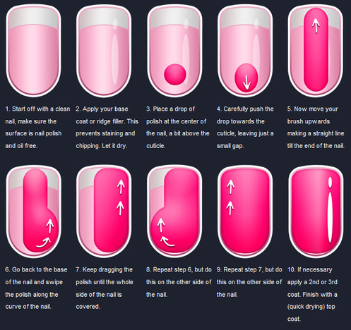 13. Fíjate en esta fotografía para averiguar el metodo correcto de pintar las uñas y que quede perfectas.