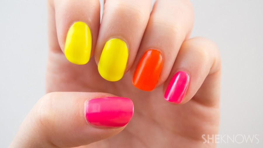 8. Para que los tonos neón en nuestra uñas queden perfectos, aplica una base blanca. Así el color quedará más resplandeciente.