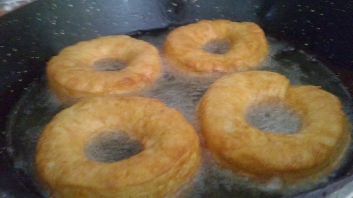 Fríelos en abundante aceite bien caliente, cógelos con mucho cuidado para que no se baje la masa.