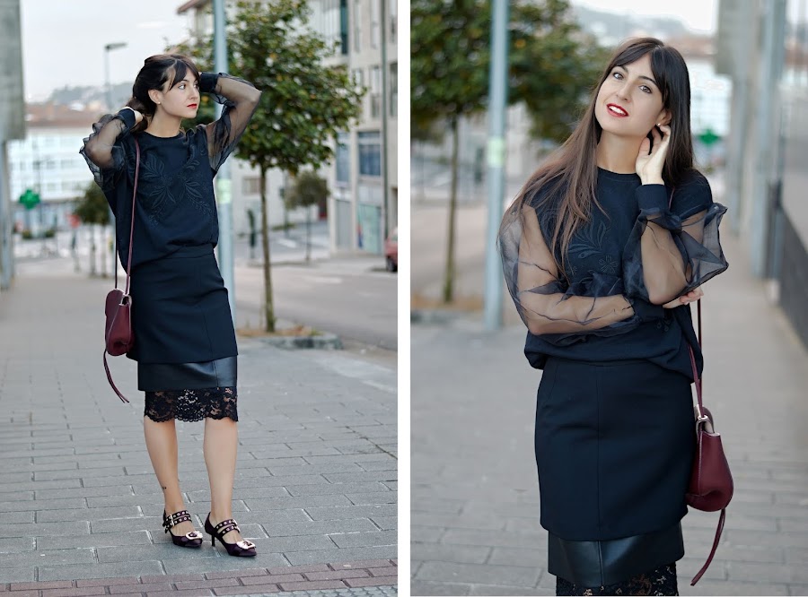 Falda: Zara/ Sudadera: Mangooutlet/ zapatos: Uterqüe / Bolso: Adolfo Domínguez