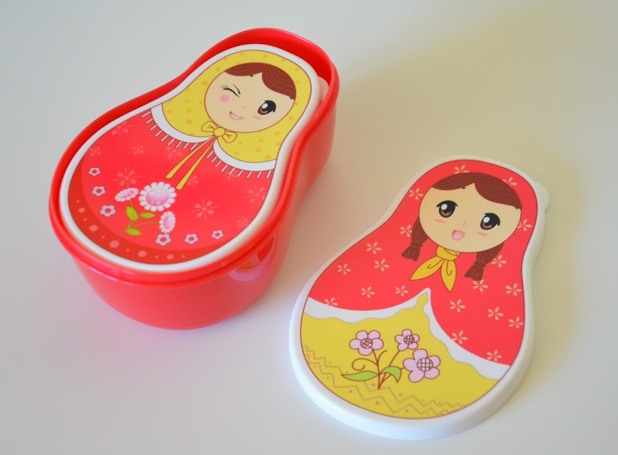Como veis en las fotos son táperes con forma de Matrioska y al mas puro estilo de las típicas muñecas rusas, vienen 4 envases, unos dentro de otros.