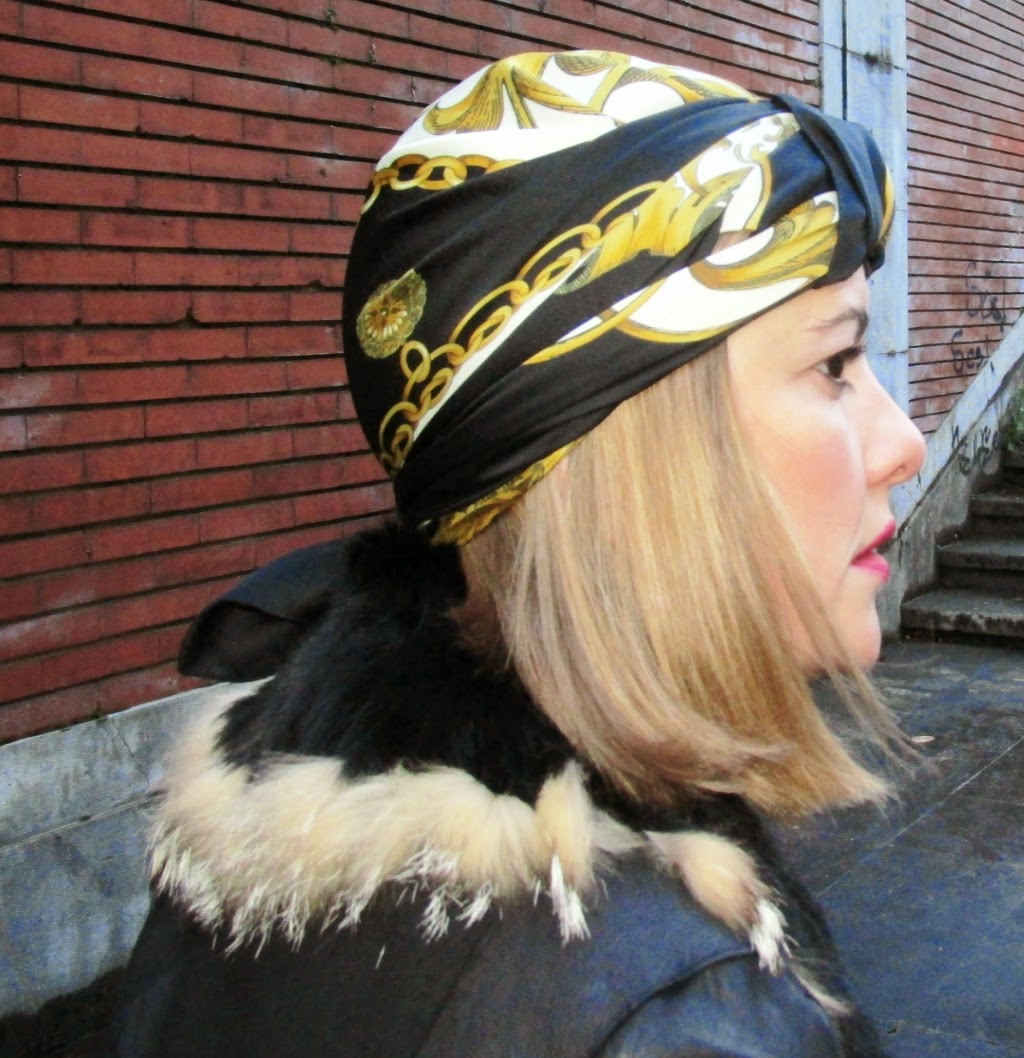 En éste caso quería enseñaros como me ha quedado el turbante. Tras tiempo intentándolo y después de ver un tutorial muy sencillo conseguí que quedara como a mi me gusta. Al final resultó muy fácil y quedan preciosos con un pañuelo bonito que seguro todas teneis en casa. Si os apetece un día os enseño a hacerlo.