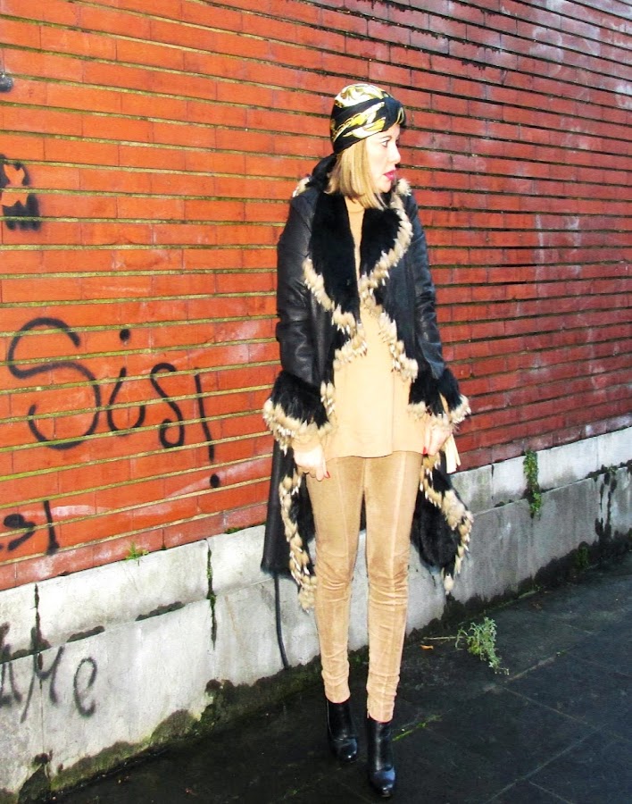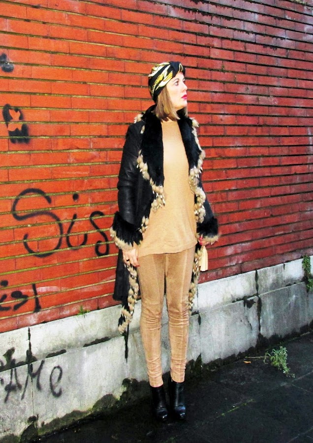 Poquitas fotos para el último post de la semana. El look en si es muy sencillo, pantalones y jersey a tono en camel. Pero un abrigo especial y un par de complementos vistosos lo cambian por completo.