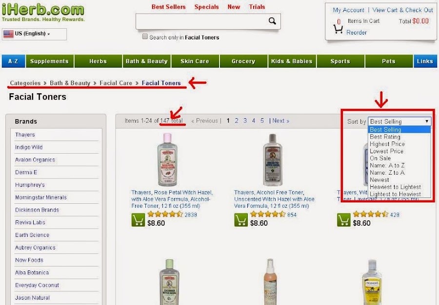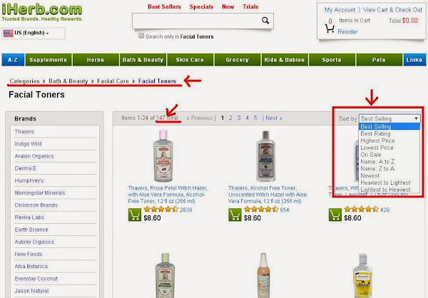 En la imagen os he marcado la ruta para encontrar los tónicos, que es la que os acabo de comentar, también señalo que ahora mismo podemos encontrar 147 productos en esta categoría. Lo último que os señalo es una herramienta para ordenar los artículos como más nos interese: Los más vendidos, los más valorados, los mas caros, los más baratos, ofertas, alfabéticamente, los más ligeros o los más pesados.