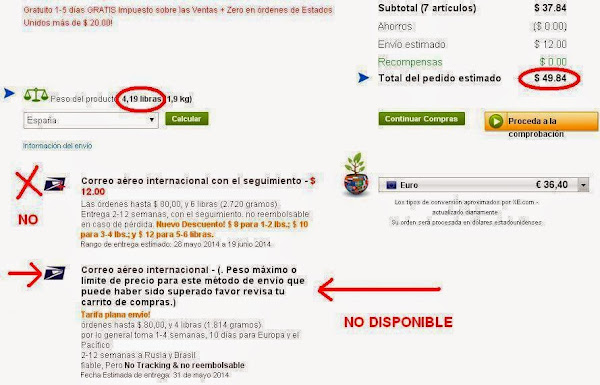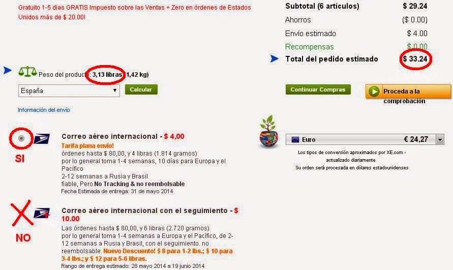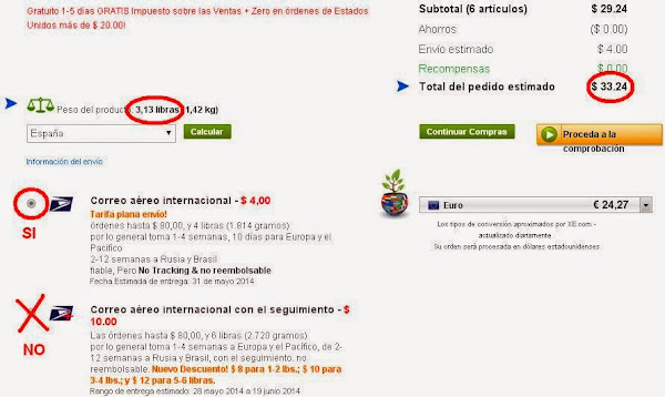 Debemos elegir siempre la opción de envío más económico (4$) y para esto tenemos que cumplir las dos condiciones anteriores porque si no está opción desaparece.