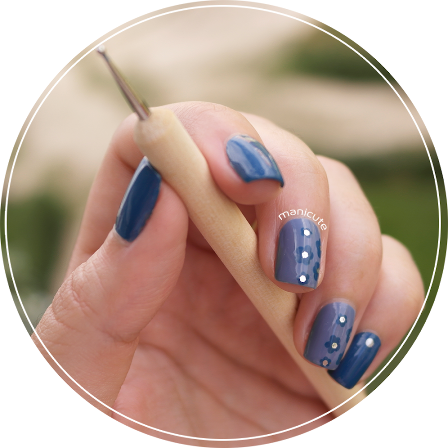 En mi humilde opinión, creo que estas flores no quedan fuera de lugar gracias a los color es con los que están hechas. Como os decía al principio del post, el color azul es muy difícil de usar sin que quede muy llamativo. ¡Imaginaos unas uñas en azul eléctrico! Sin embargo, lo que me ha gustado de los dos tonos que os enseño hoy es que, en ambos casos, son colores poco intensos, poco saturados, que se llenan de matices grises. Esto, a mi juicio, facilita nail arts llenos de color pero discretos, con mil posibilidades a la hora de combinar ente sí los tonos y, lo más importante, ¡que pegue con nuestra ropa!