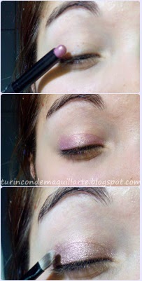 Una vez difuminado, como veis el tono amarillento del párpado lo disimula muy bien, puede ser utilizada para esa función cuando llevamos un look natural sin sombras. Y ya tenemos todo listo. ¡ vamos a ello !