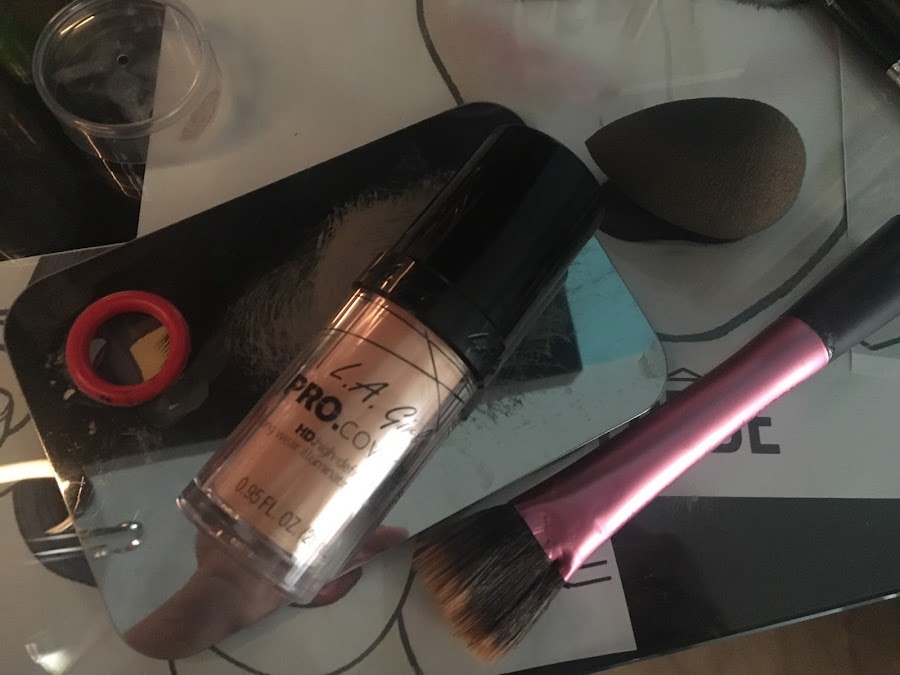 Damos paso a la base de maquillaje, aplicamos la base "Pro Coverage" (tono porcelain) con una brocha "mofeta" o esponja sin arrastrar para no mover las correcciones. Esta base es cubriente pero se funde perfectamente dejando una piel muy pulida con poco producto. En la foto puede parecer que llevo demasiada base pero como este es un maquillaje para llevar de noche requiere más producto y texturas más cubrientes.