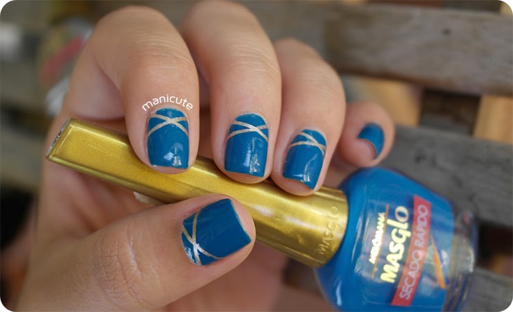 La semana pasada os enseñaba los esmaltes de Masglo que me habían enviado desde Primor; me encantaron en cuanto a brillo, cobertura y aplicación, pero me disgustó que no fueran 3free =( Dado que el esmalte turquesa oscura y el dorado secaban especialmente rápido, he querido aprovecharlos para hacer esta manicura con nail tapes.