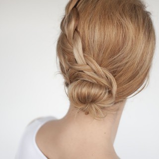 Es muy sencillo, recoge el pelo en la nuca dejando la parte delantera del pelo suelta. Con ese mechon delantero haremos una trenza normal que sujetaremos al moño con las horquillas.