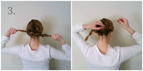 Doblamos los extremos de las trenzas sobre sí mismos y los recogemos con horquillas y ¡hemos terminado!