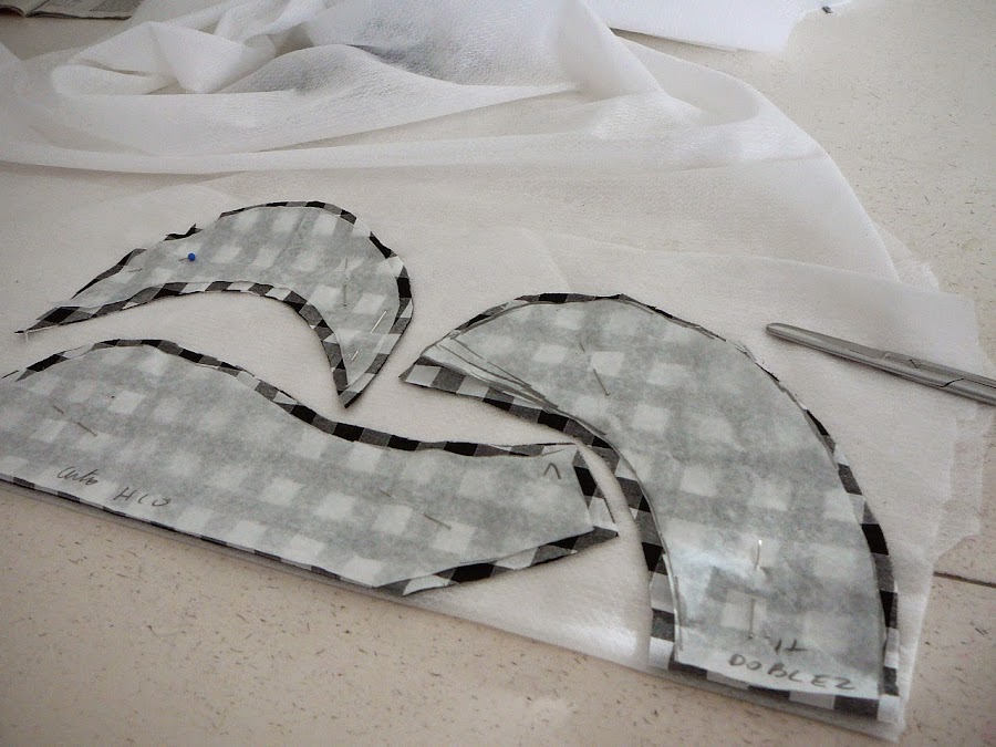 Cortamos otra vez las tres piezas en entretela y en forro ,