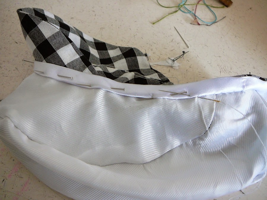 Y aquí es dónde ME FALTA UNA FOTO!!!!!el la que se vería como metemos el forro dentro de la tela exterior ,y colocamos la visera en la parte delantera , aunque creo que es bastante obvio