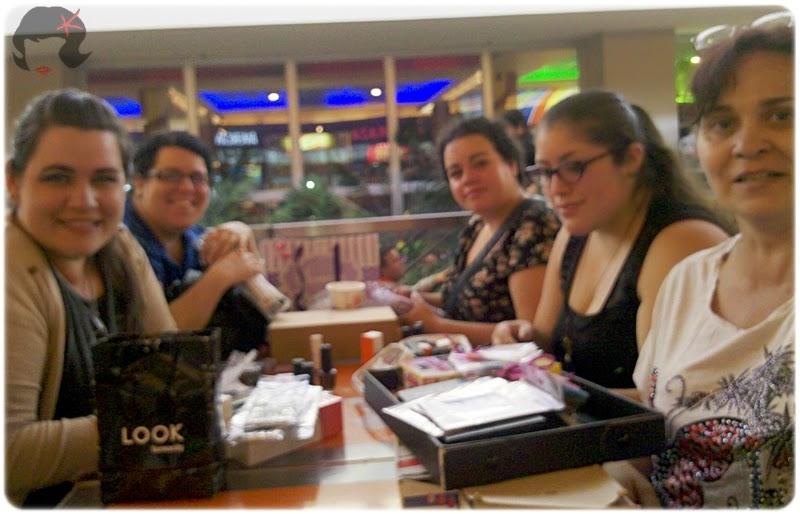 Siguiendo con el relato ya eramos cuatro, Marga (mi amiga) Mariel, Elizabeth y yo, al ratito llegóaron Carina y Paula (Del blog Lacquerologa), entonces decidimos ir a buscar un lugar para sentarnos, así que fuimos al patio de comidas, juntamos tres mesas y se armó la fiesta (de esmaltes y cosméticos!)