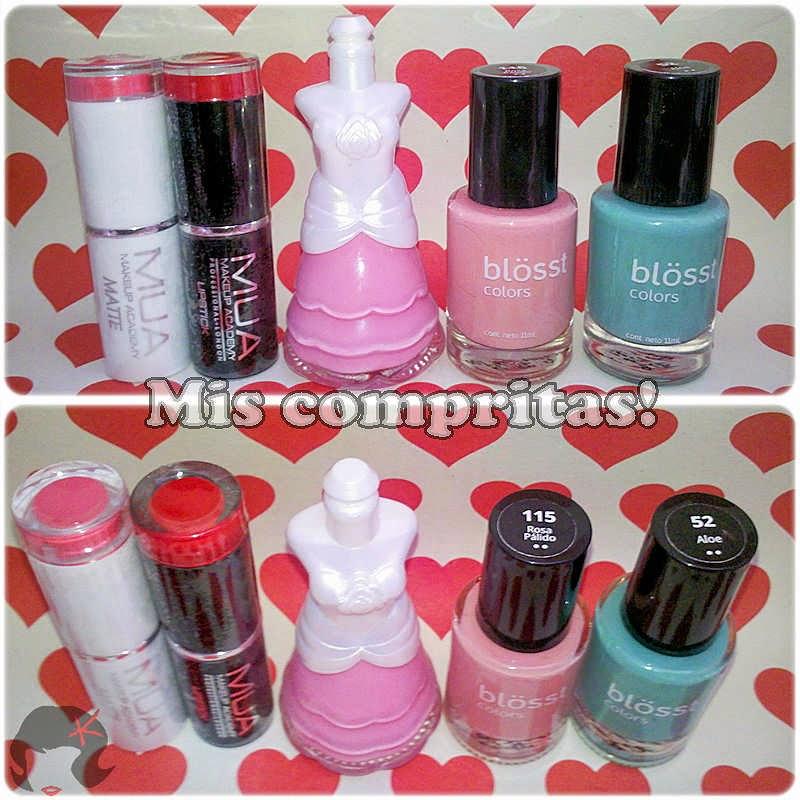 Estas fueron mis compras, dos labiales MUA, uno matte y el otro normal, un esmalte chinito de vestidito que es precioso y dos blosst a los que le tenía echado el ojo hace rato!