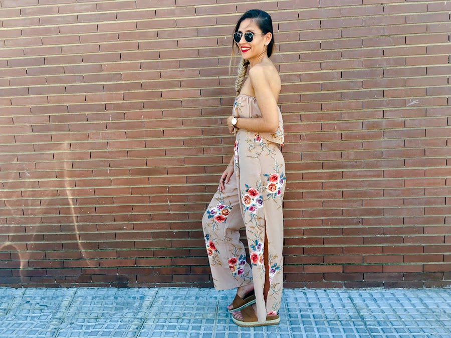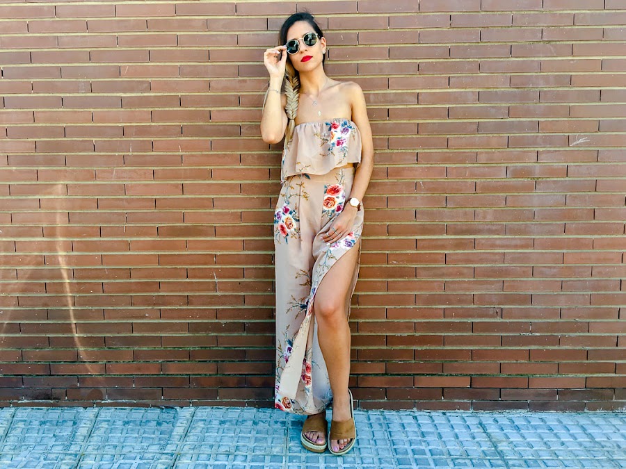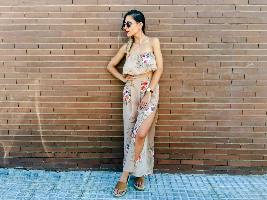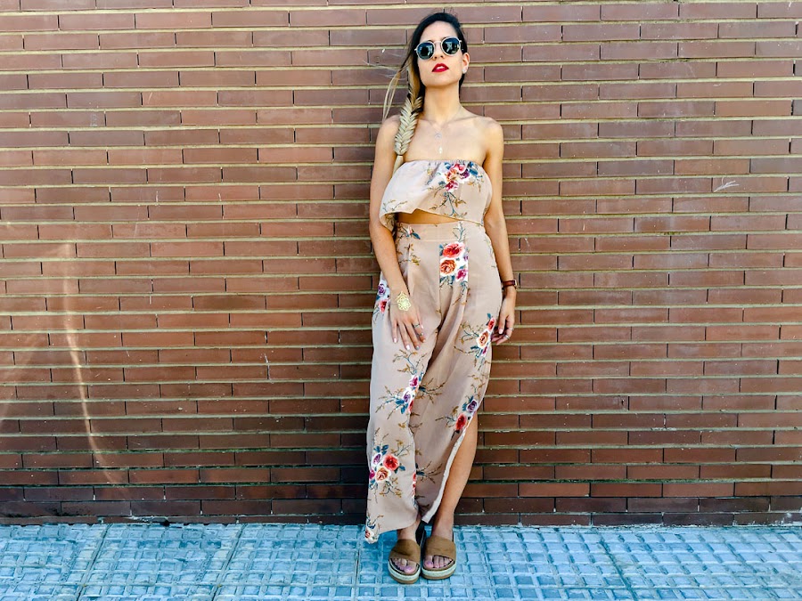 Y es que hoy os enseño un conjunto de dos piezas de VIPSHOP.com, con un pantalón estampado floral color camel, súper cómodo y bastante ancho con una apertura en una sola pierna. A juego, el crop top de hombros descubiertos con el mismo estampado. Este conjunto es super fresquito e ideal para el verano!!