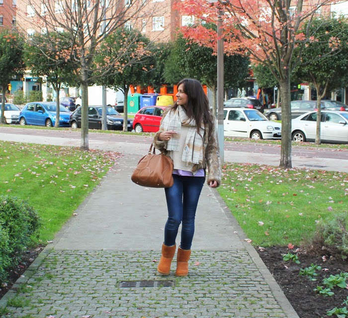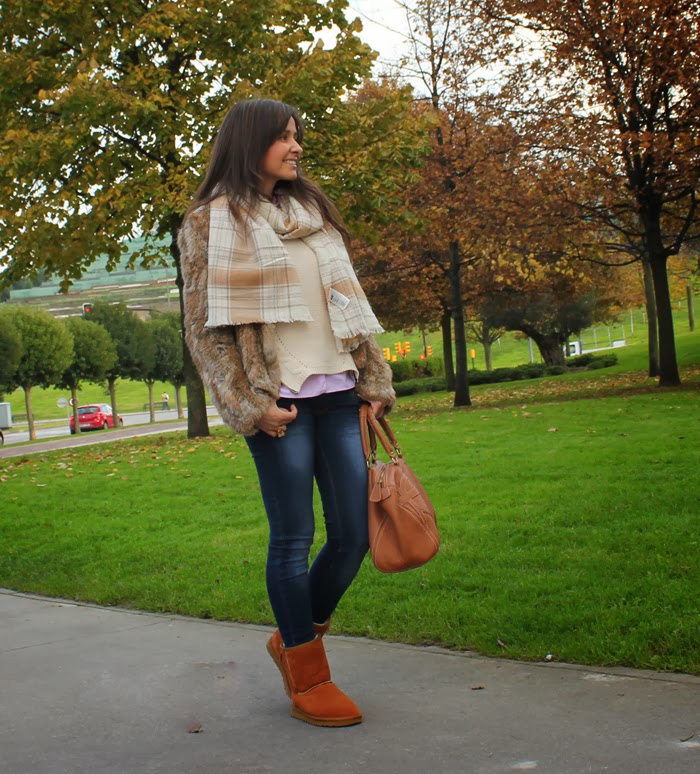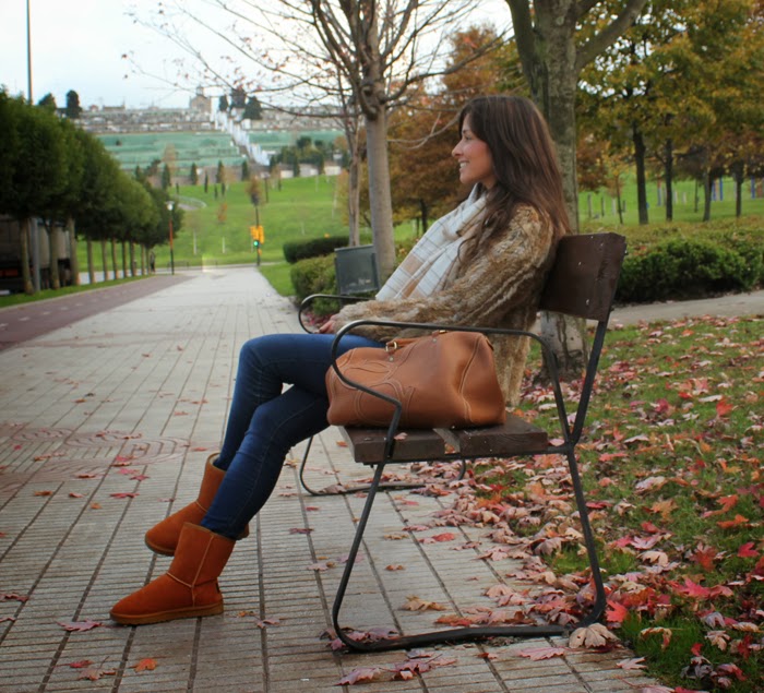 Hoy llevo las archiconocidas Ugg Australia, hace ya varios años que se pusieron de moda. Nunca me apasionaron además el hecho de ser tan peluditas me tiraba para atrás, ya que no aguanto el calzado tan abrigado porque me agobia. Sin embargo su comodidad me gusto tanto que no me las apeo.
