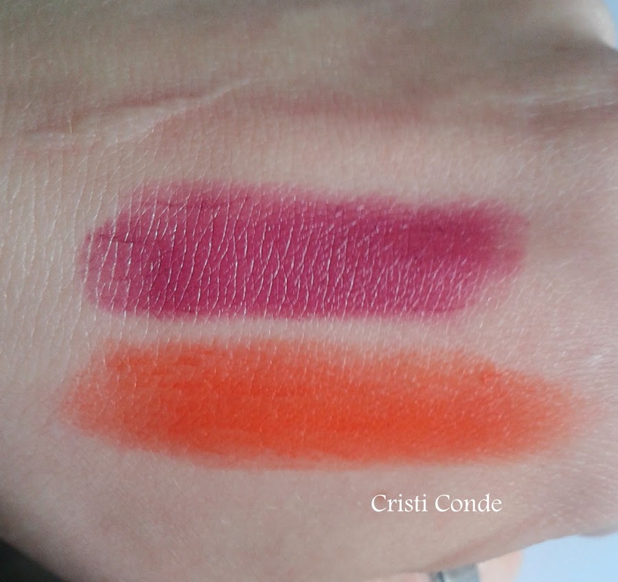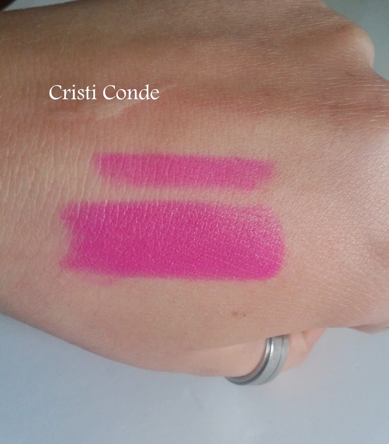 Os dejo la foto con los suaches, el de arriba es el lápiz y el de abajo el labial. Y os digo que en la foto no se aprecia todo lo potente que es el labial, es mas potente y mas neón de lo que estáis vendo en la foto.