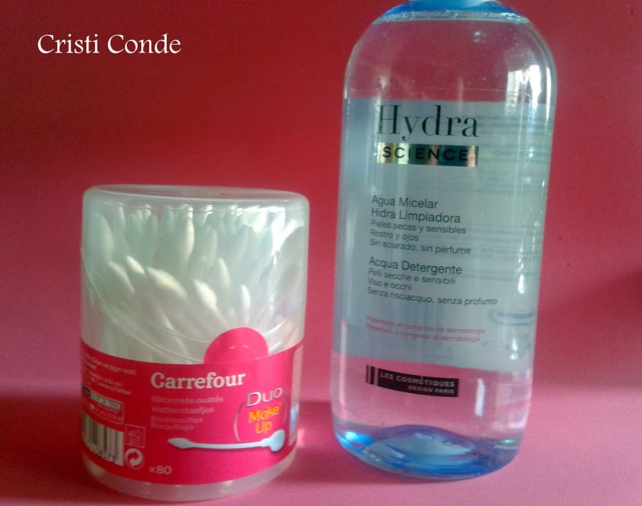 En otra de las ocasiones en las que fui a hacer la compra a Carrefour aproveche para comprarme mi agua micelar favorita que es la de la marca de Les Cosmetiques, trae 500ml y cuesta 5? . También me compre los bastoncillos dúo para makeup que me encantan y son muy útiles, cuestan 1? mas o menos y traen 80 bastoncillos.