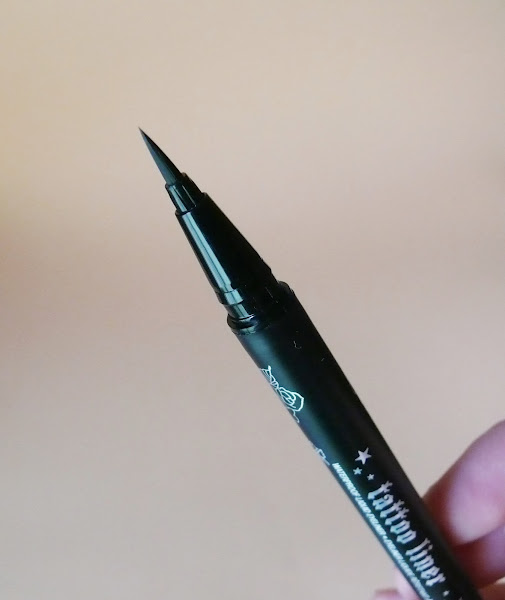 Me gusta el trazo que deja, fino con la punta o mas gordo si utilizas más trozo de la punta. Es un negro negrísimo muy intenso, aunque no es un negro mate sino más bien con algo de brillo. Su duración es muy buena, una vez aplicado no tengo que repasar el delineado pasadas unas horas. Un sobresaliente!