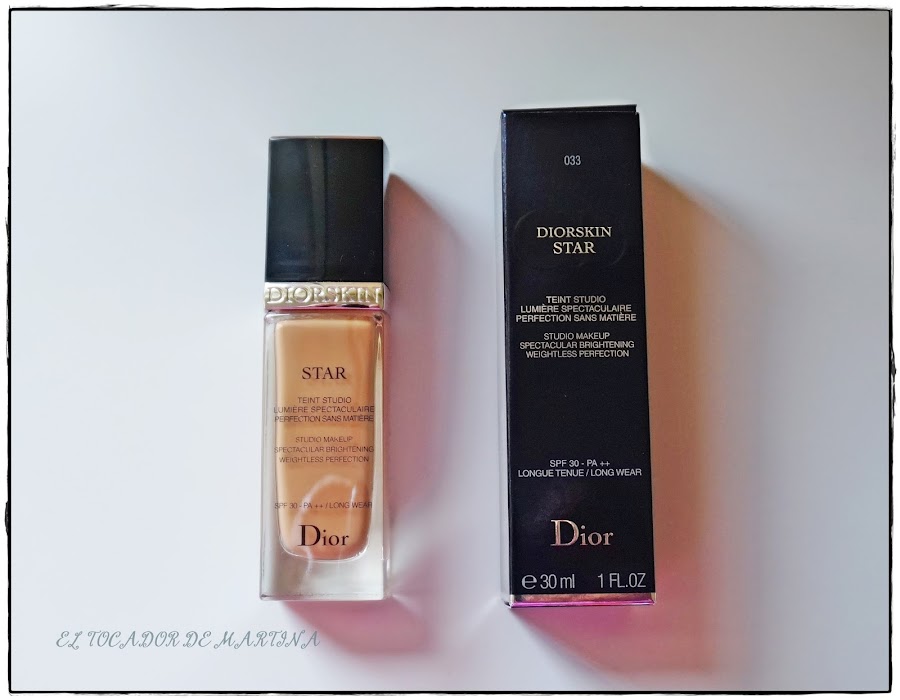 En primer lugar la base de maquillaje, con una cobertura totalmente modulable que va de ligera a media, un acabado luminoso sin ser exagerado, y apta para pieles de secas a mixtas. Mi tono es el 033.