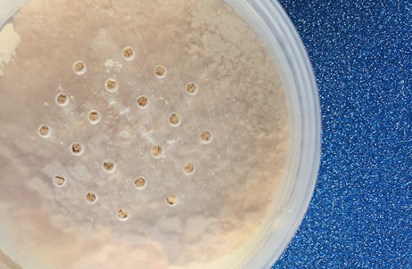 Son unos polvos sueltos con un pequeño tono, que se agradece porque los blancos y yo nos llevamos un poquito mal si se va una a fotografiar... Y con un envase de esos que me ponen un poquito nerviosa, porque al sacar la pegatina que los precinta originalmente el polvo baila libre por todo el envase y al abrir la tapa eso parece un capítulo de Narcos.