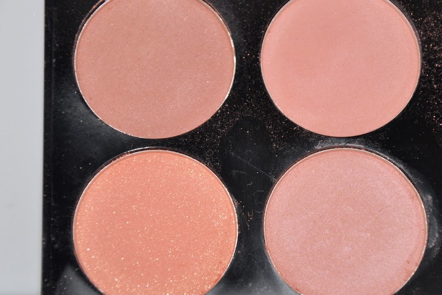 Coloretes de los seis,tres tienen shimmer dorado (sin exagerar) y los otros tres son mates.Tienen una textura muy suave,la pigmentación es bastante buena, y no me resultan demasiado polvorientos.