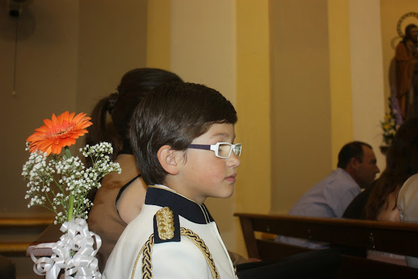 Nos faltaba el GRAN JEFE, pero también estaba, desde ahí arriba, con una inmensa sonrisa de vernos a todos tan guapos y orgulloso de ver a su nieto hecho un hombrecito.