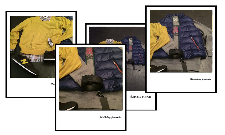 Como habéis podido observar, he debido ser un buen chico y me he debido portar muy bien, he recibido bastantes regalitos, por los cuales he estoy muy agradecido y contento, entre ellos un chaleco de plumas azul y sweater amarillo de Purificación García, camisa de cuadros de Boss, Zapatillas marrón chocolate y amarillo de New Balance (parece que se han puesto de acuerdo para coordinar todas las prendas), sudadera gris con logo en el pecho de Loewe, y por ultimo y no menos importante cinturón Damier Graphite con iniciales de Louis Vuitton.