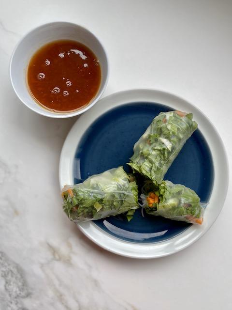 Almuerzo: le pregunté qué deseaba almorzar: rollitos primavera de salmón. En la tarde hicimos video llamada con la familia y entre todos le cantamos cumpleaños. Jugamos con Lorenzo y disfrutamos del día.