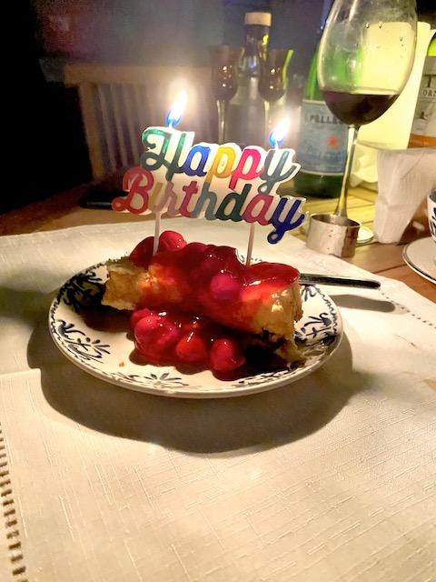 A Joaquín no le gusta el queque tradicional de cumpleaños, así que le preparé un chessecake de cerezas donde coloqué la candela. Extrañamos la compañía de familiares y amigos, pero conversamos y disfrutamos como si estuviéramos en cualquier otro momento, alejados de lo que está ocurriendo.