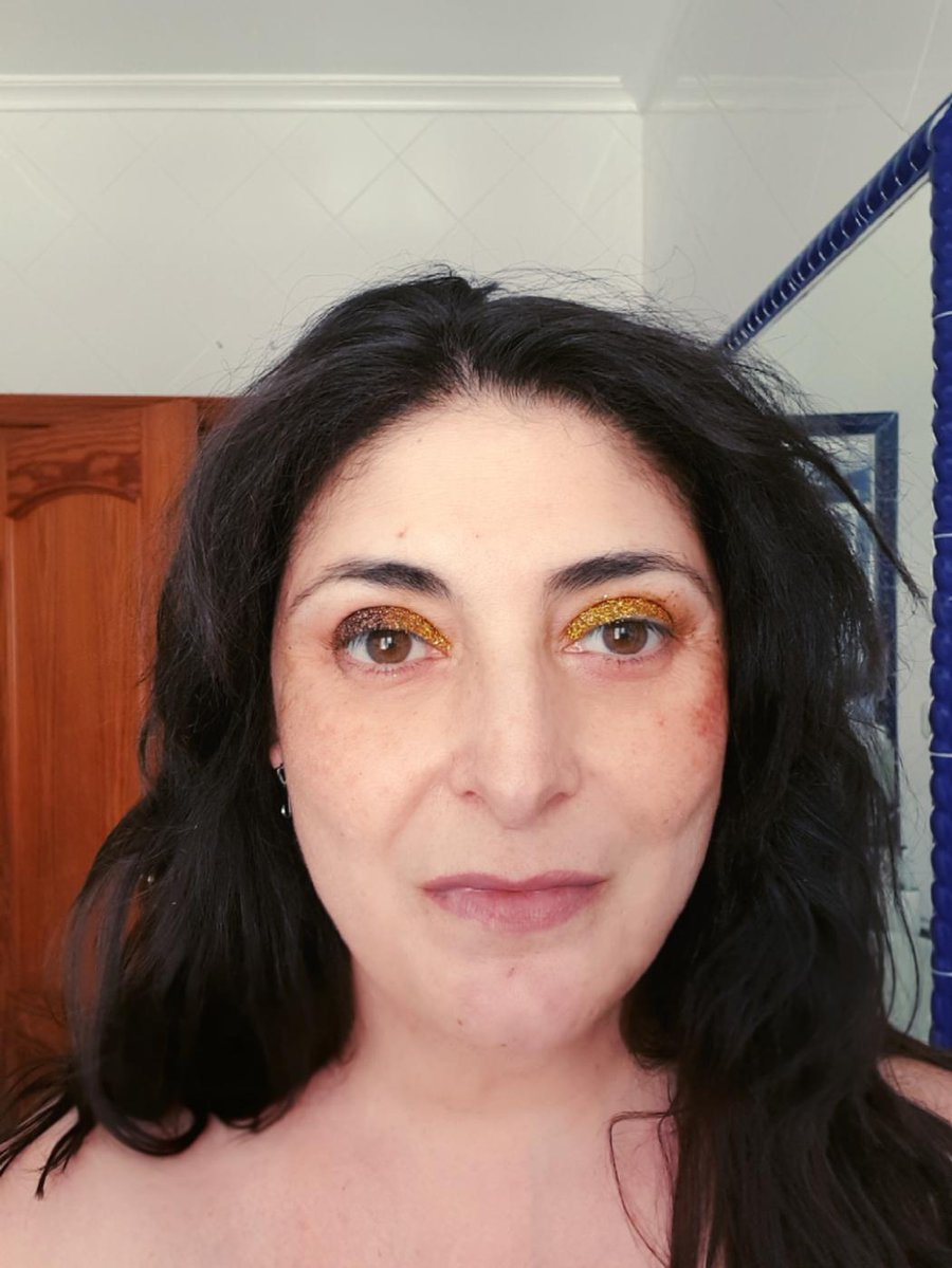 Esta es la forma más cómoda de aplicar la purpurina, ya que no mancha el pómulo al ser aplicada.