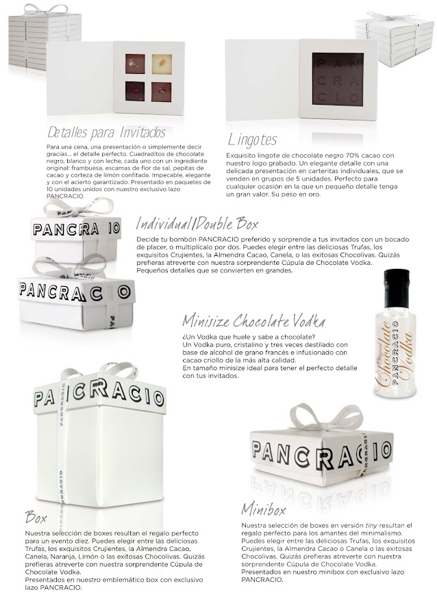 Nada menos que la firma de chocolate y dulces Pancracio ha ideado una serie de cajas con el cuidado packaging que caracteriza a la firma, con la que seguramente vamos a dejar a todos los invitados con el mejor sabor de boca posible. Anteriormente os había mostrado la colección especial de Havaianas para estas ocasiones.