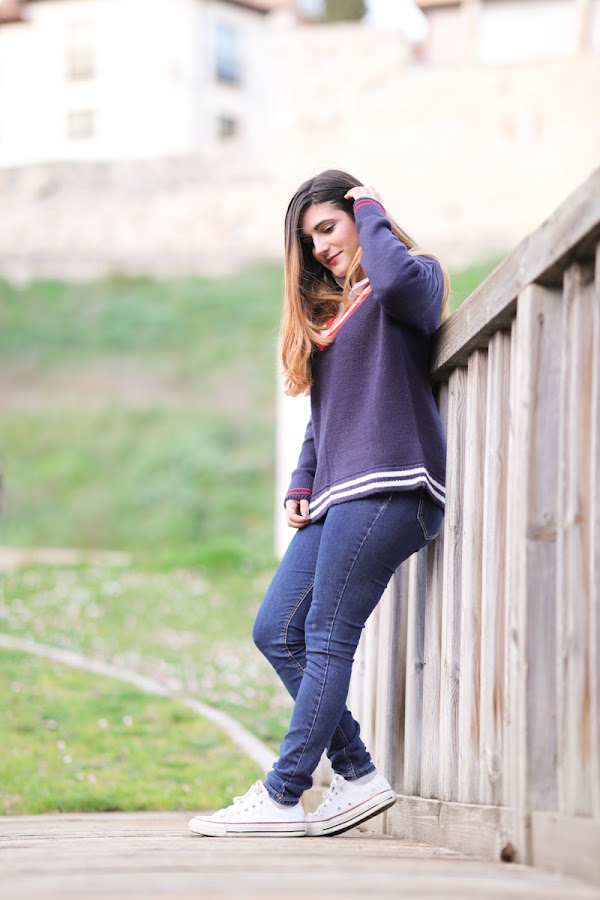 Solo para que conste, este jersey no está comprado en ninguna tienda de ropa. Sí, como lo leéis. Voy a decir que lo encontré en un mercadillo para abreviar. Veréis, yo no tengo el don de encontrar joyas en mercadillos y casi todo lo suelo ver hortera e innecesario, pero a veces doy con algo. Y sí que es cierto que cuando eso pasa me pasa a lo grande. Es decir, no es que sea algo mono y decente que ponerte porque algo hay que llevar, sino que me gusta DE VERDAD. En plan, mucho. Me pasó también con dos de mis chaquetas favoritas (la de cuadros vichy y la de cuadros tartán) y con algunas cosas que no he sacado en el blog porque no se ha dado la ocasión.